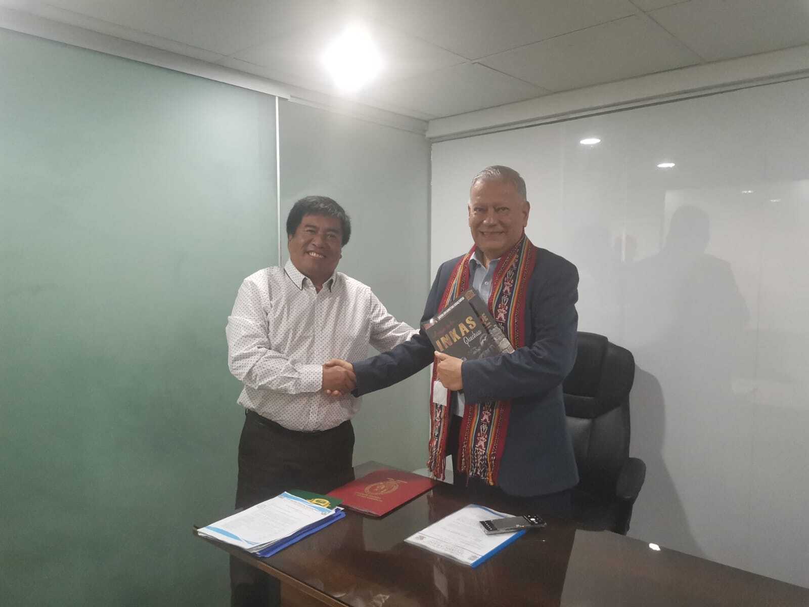 Alcalde de Huancarani, Cusco, Mario Suma y el director de la real Academia de la lengua quechua, Fernando Hermoza.